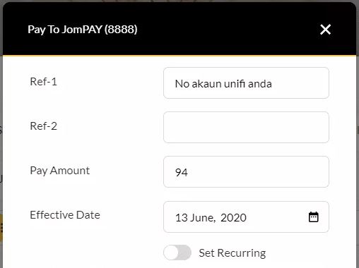 Cara Bayar Unifi Guna jomPAY Maybank2u