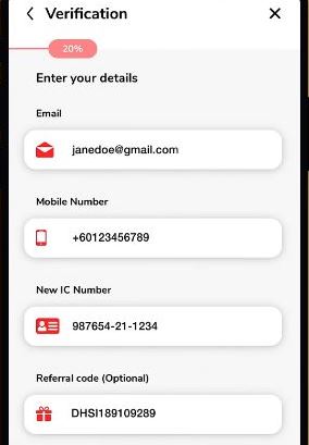 - Masukkan butiran Anda, seperti kad pengenalan, emel dan nombor telefon mudah alih Anda.