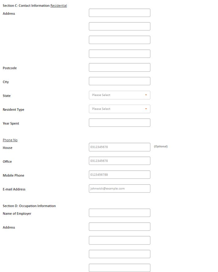 - Pada Section C, isikan Contact Information Residential.