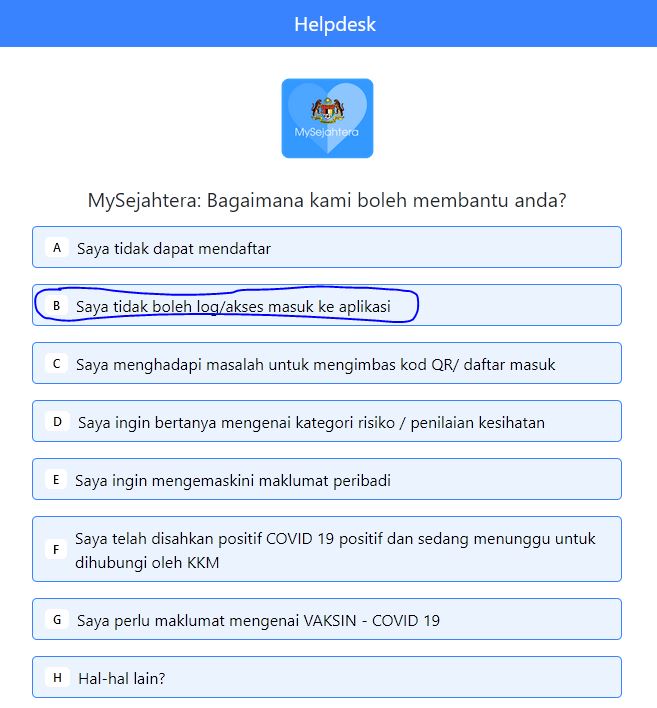 - Di bahagian MySejahtera: Bagaimana kami boleh membantu Anda?