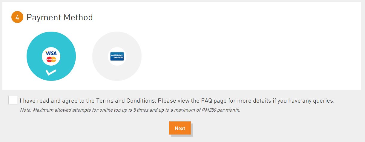 - Pilih payment method, boleh guna kad VISA/American Express.