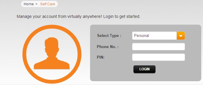 - Sila login ke Self Care (masukan type personal/corporate, nombor telefon dan PIN).