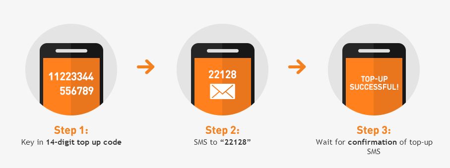 Masukkan 14 digit nombor dalam baucar yang Anda beli. Taip mesej SMS dan hantar 14 nombor kod ke 22128.