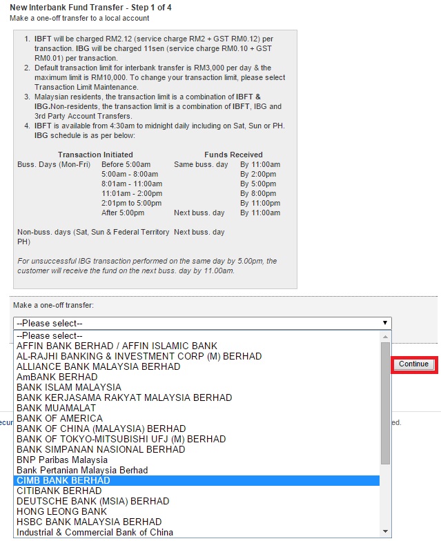 - Klik pautan New interbank fund transfer bila Anda mahu transfer ke akaun bank yang lain.