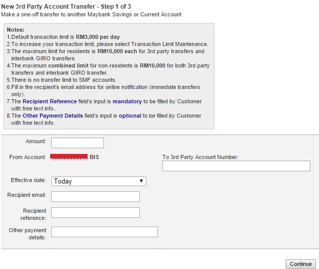 - Pilih new 3rd party account transfer jika Anda mahu transfer maybank ke maybank.