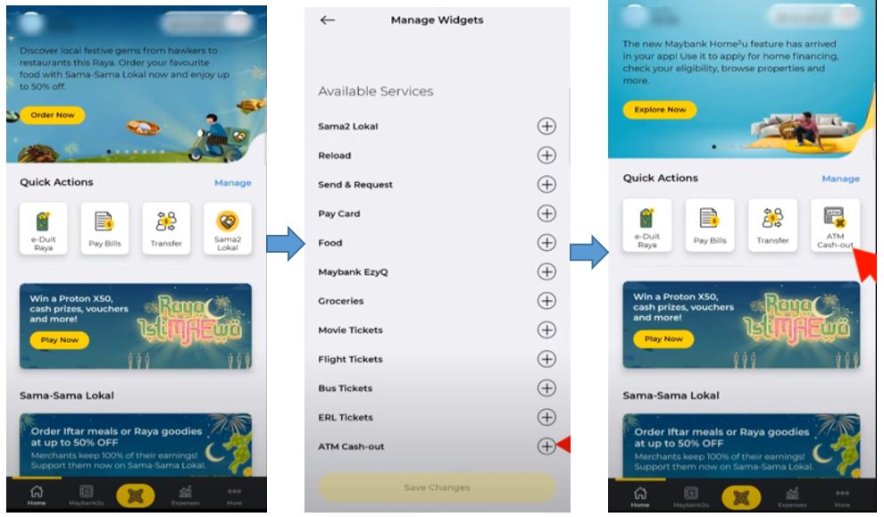 Cukup buka aplikasi MAE Maybank Anda, kemudian ikut arahan yang diberikan untuk membuat pengeluaran tunai di mesin ATM.