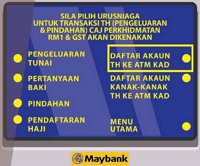 - Anda perlu tekan pada menu Daftar Akaun TH ke ATM Kad