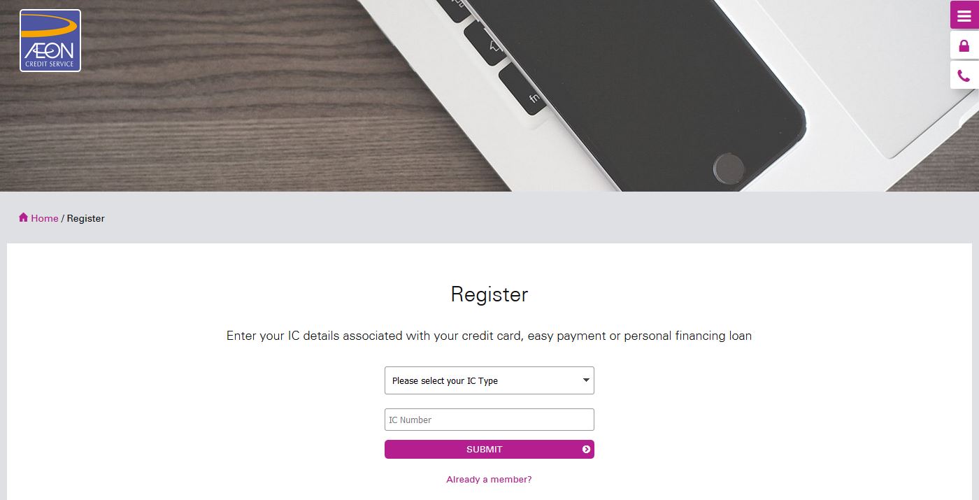 Cara baki pinjaman Aeon online dapat juga dilakukan melalui link https://www.aeoncredit.com.my/login tapi jika Anda tidak memiliki akaun AEON, Anda boleh langsung mendaftar melalui link berikut ini https://www.aeoncredit.com.my/register