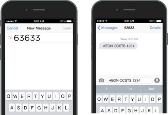Contoh: AEON CCBAL 1234 hantar ke 63633