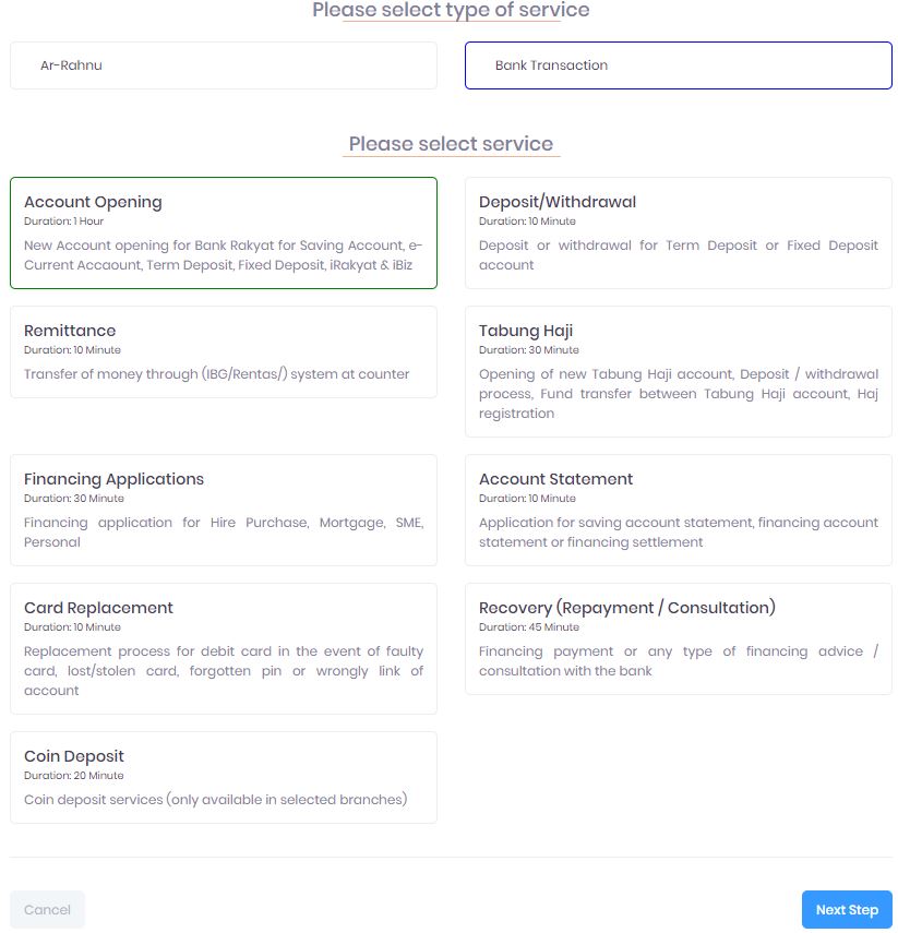 - Lawati pautan rasmi Bank Rakyat di https://appointment.bankrakyat.com.my/