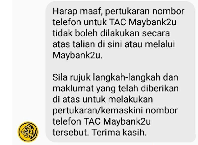 - Cakap ke customer service, bahawa Anda ingin tukar nombor TAC maybank